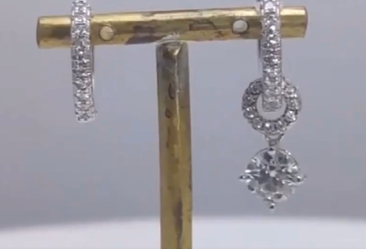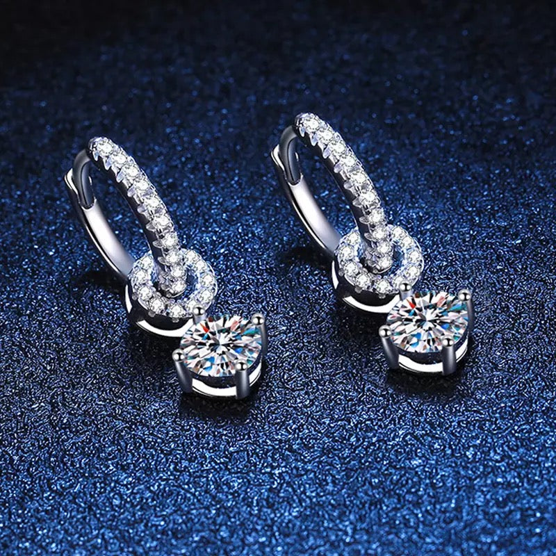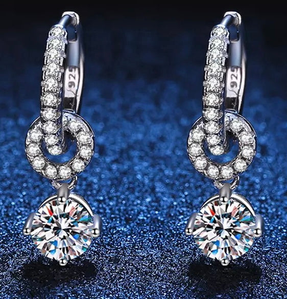 2 in 1 unique design moissanite earrings. Earrings can be used as hoop earrings or hoop earrings with dangling blings